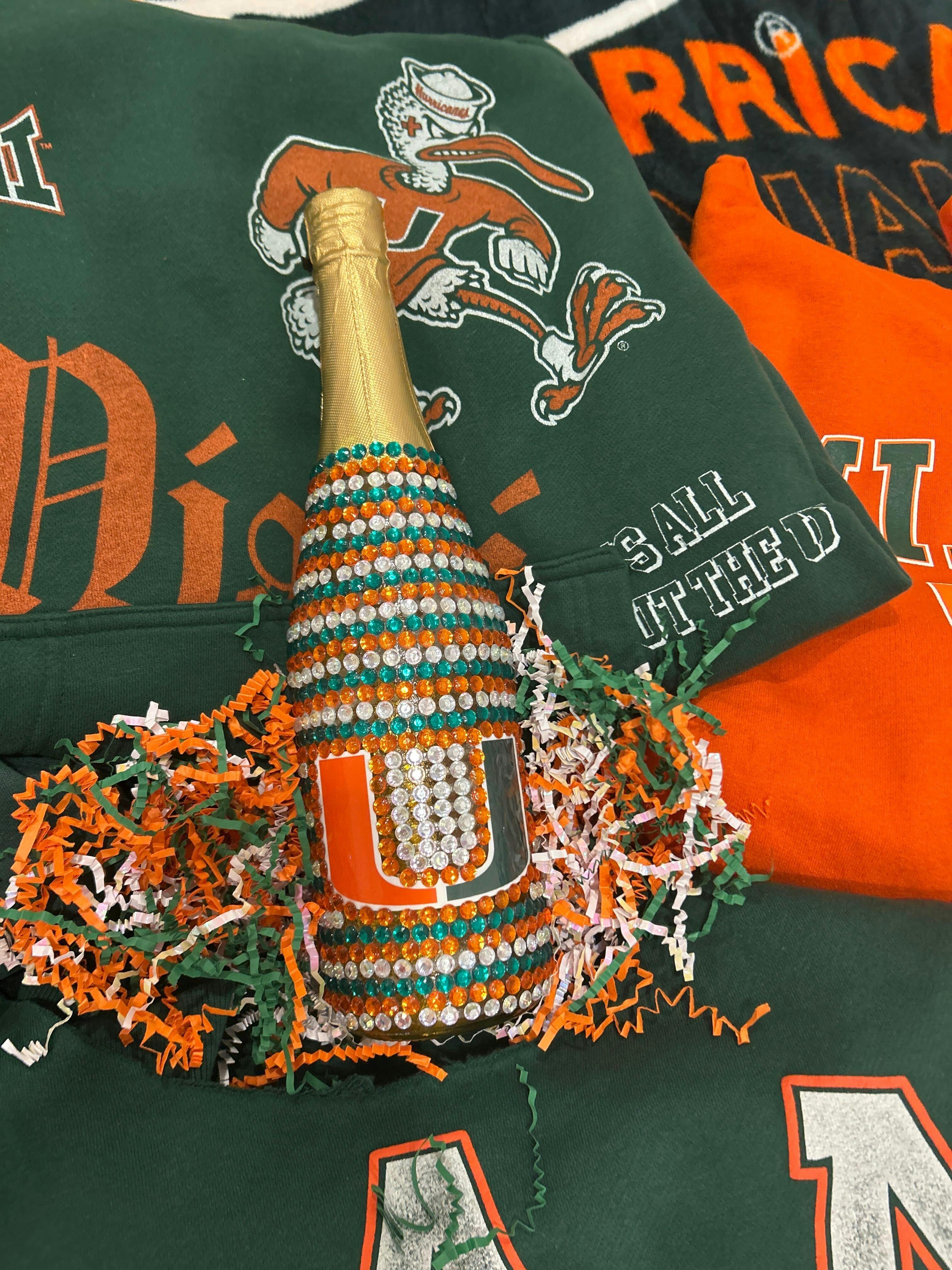 Celebrate your college acceptance with a blinged-out bottle covered in rhinestones. College Bling Bottles offer custom-made bottles with the colors of your school. All bottles are one-of-a-kind and handmade. We also make these bottles for birthday celebrations or any special occasion.The bottles are filled and sealed with sparkling apple cider. (non-alcoholic) We are ready to work directly with you to customize your bottle and are very responsive to your messages. Bottles can me made with up to 3 colors, you must request to add the third color in notes/personalization though. PURPLE IS AVAILABLE as a color, although shopify only allows a certain number of variations, please just note that in comments/notes.